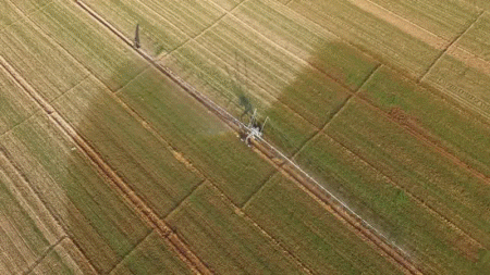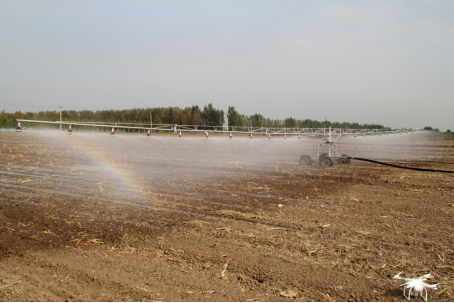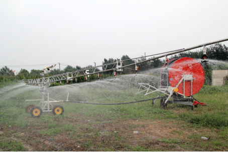 淋灌架可360度旋轉(zhuǎn),用以躲避田間的樹木、電桿等障礙物 |