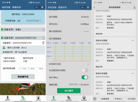 當(dāng)發(fā)生停水、停電、機械故障等情況;發(fā)生噴頭車離主機距離小于50米或零距離靠近主機,水壓低于設(shè)定值等情況下智控報警系統(tǒng)在15分鐘內(nèi)向操作人員手機進行三次短信發(fā)送和三次撥打電話報警。 |